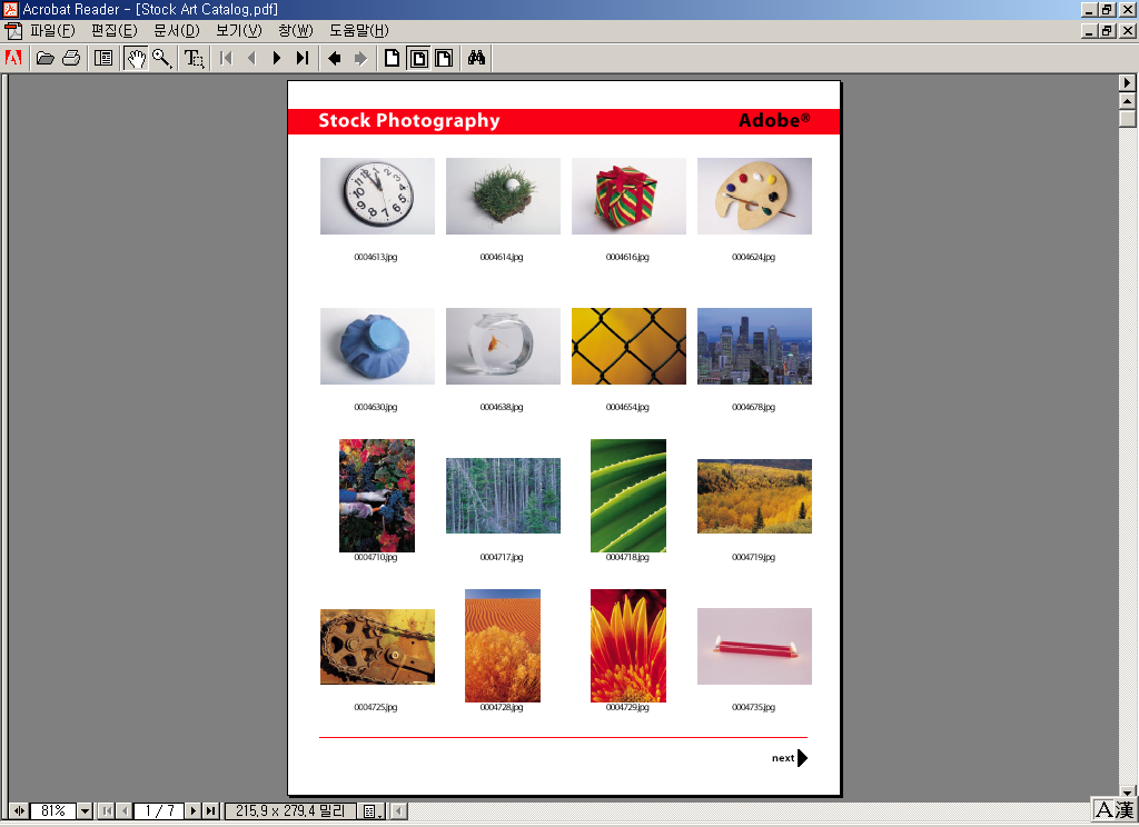 * 199여 개의 이미지 및 텍스처를 비롯한 견본 파일들이 제공된다. (Stock Art·Textures for Lighting·Sample Correction Images·Samples)