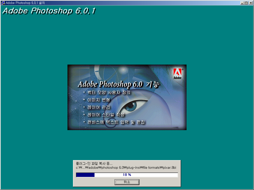전세게적 이미지 편집 솔루션 Adobe® Photoshop® 6.0 은 모든 사용자들이 사용 가능한 강력한 이미지 편집 기능들을 갖춘 차세대 이미지 편집 프로그램이라고 소개할 수 있다. 가장 광범위하고 생산