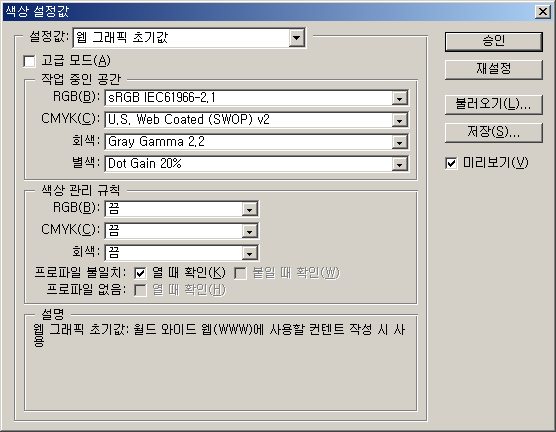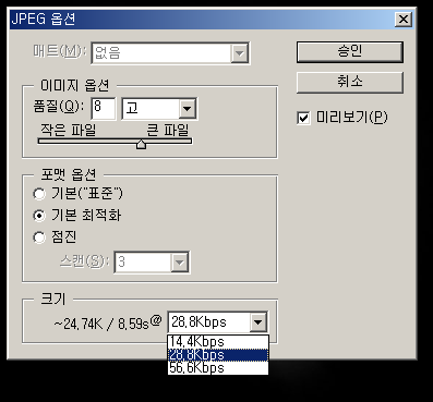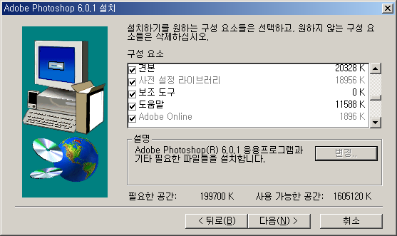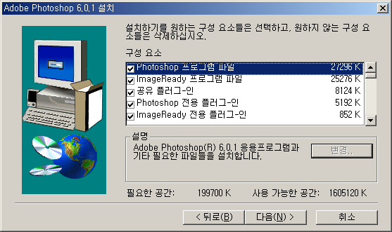 * Photoshop과 ImageReady를 동시에 사용하려면 RAM 128MB 이상은 확보되어야 한다.