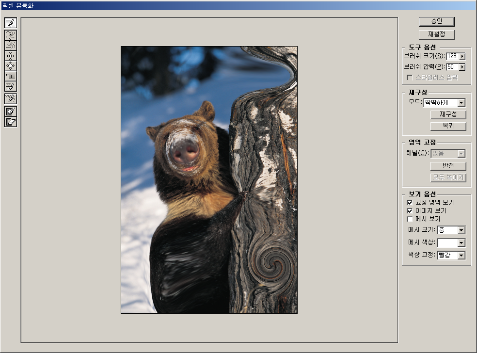 * 사진에서 얼굴 성형시켜볼 때 써볼 수 있는 이미지 변형 기능인 픽셀 유동화가 추가되었다.