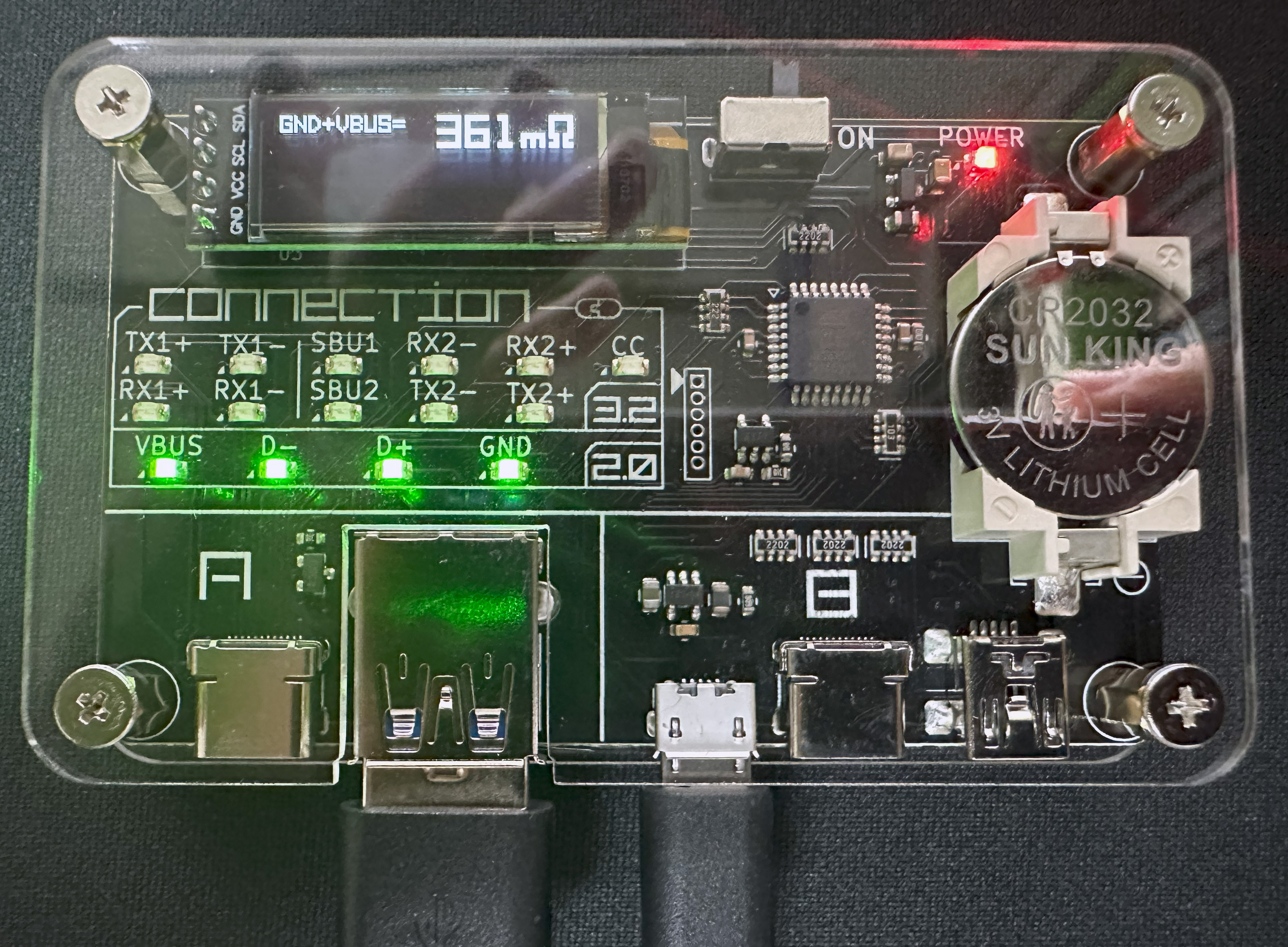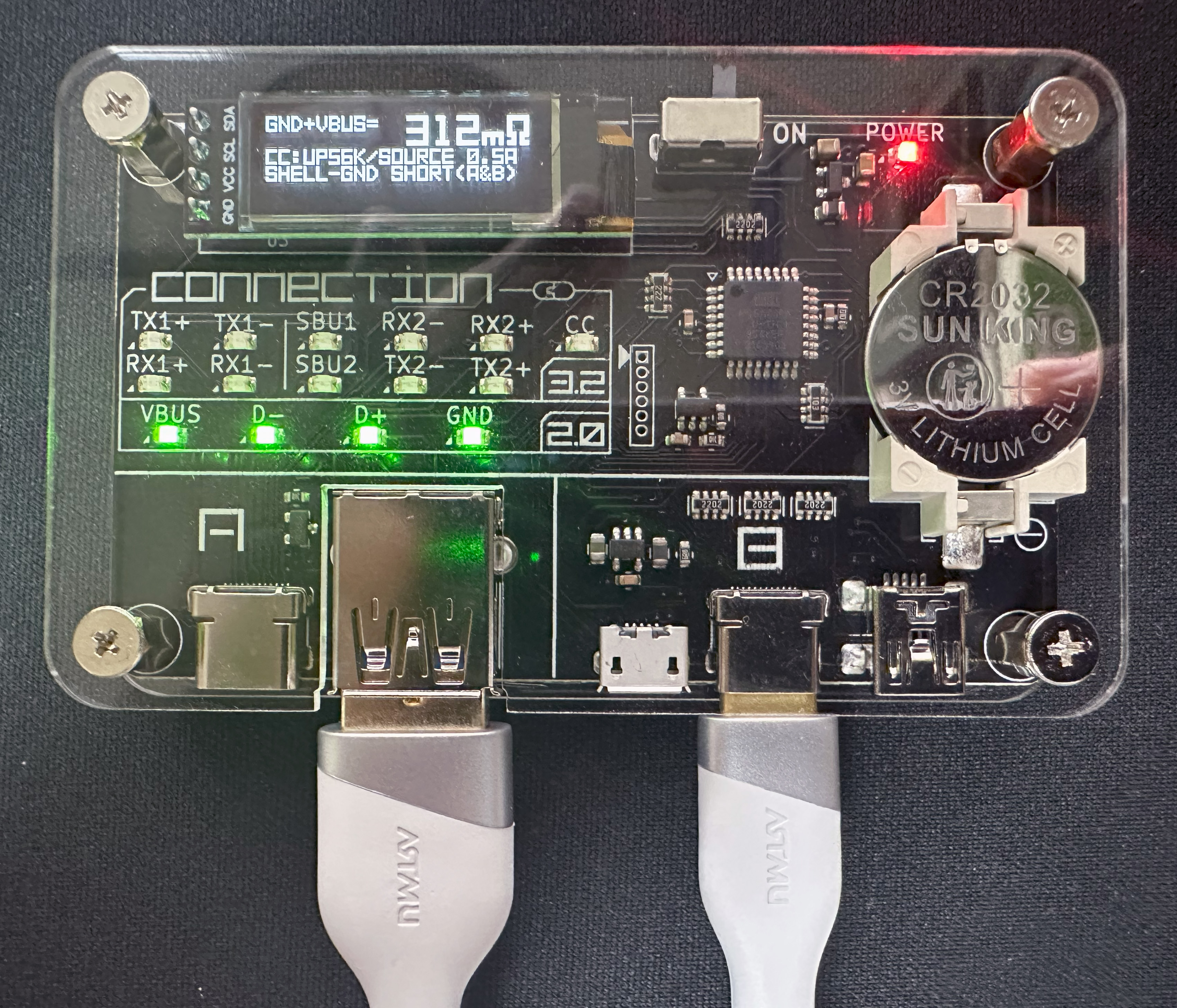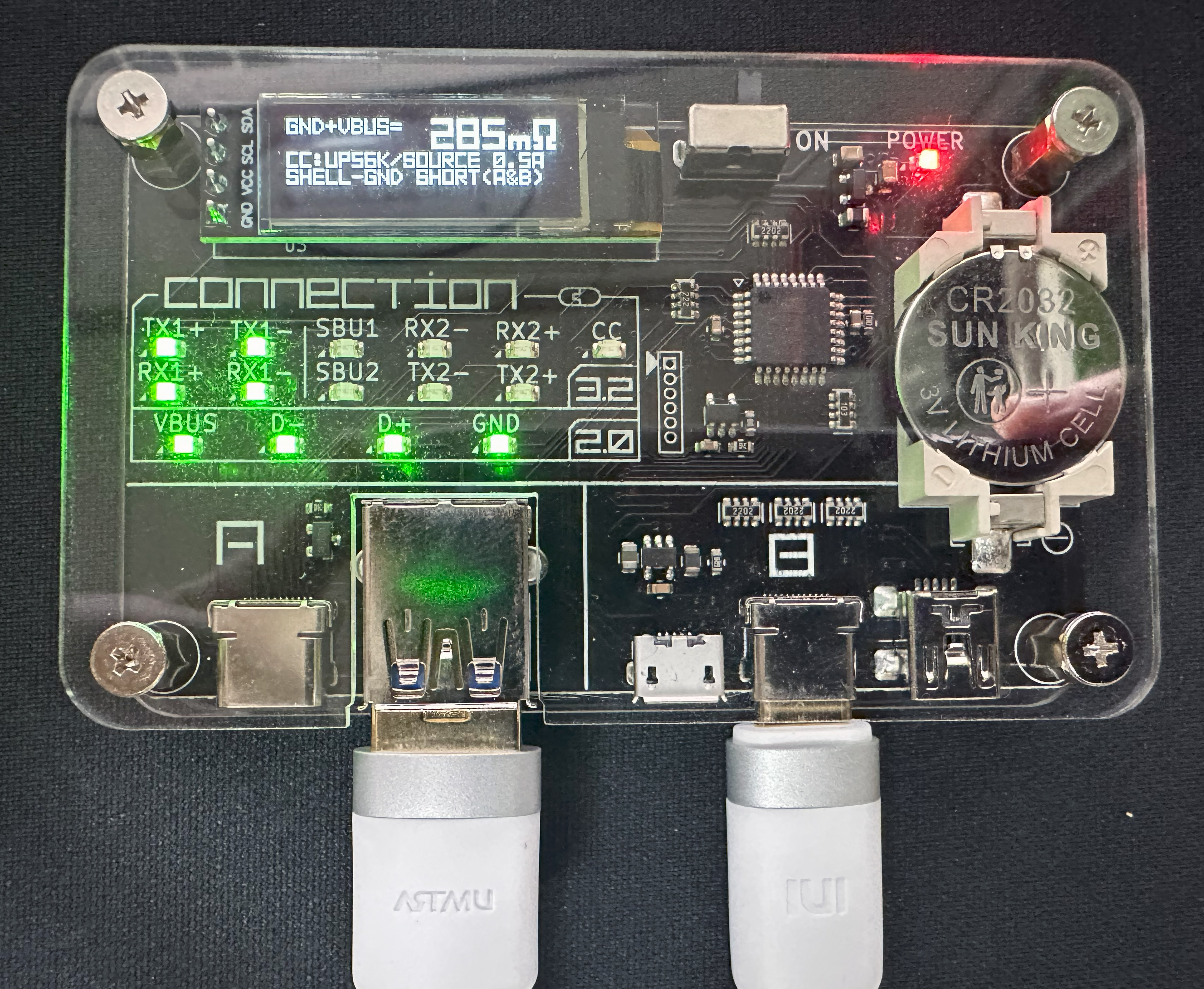 * LED 표시등 및 화면으로 USB 케이블의 접속 신호라던가 결선, 저항, e-marker 칩셋, 단자의 접지 여부 등 여러 상태를 알아볼 수 있다. (급속 충전 여부는 다른 제품을 알아보자)